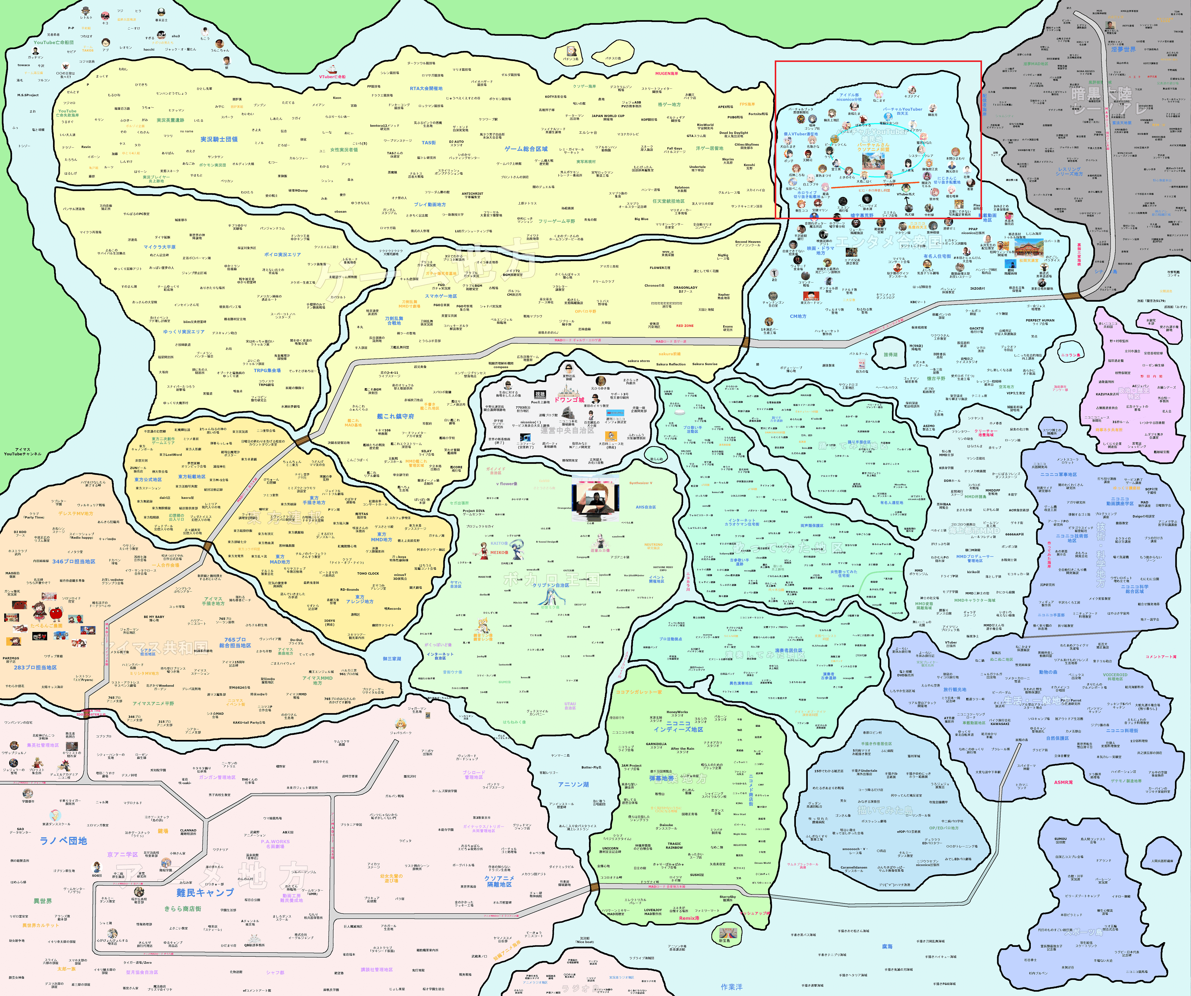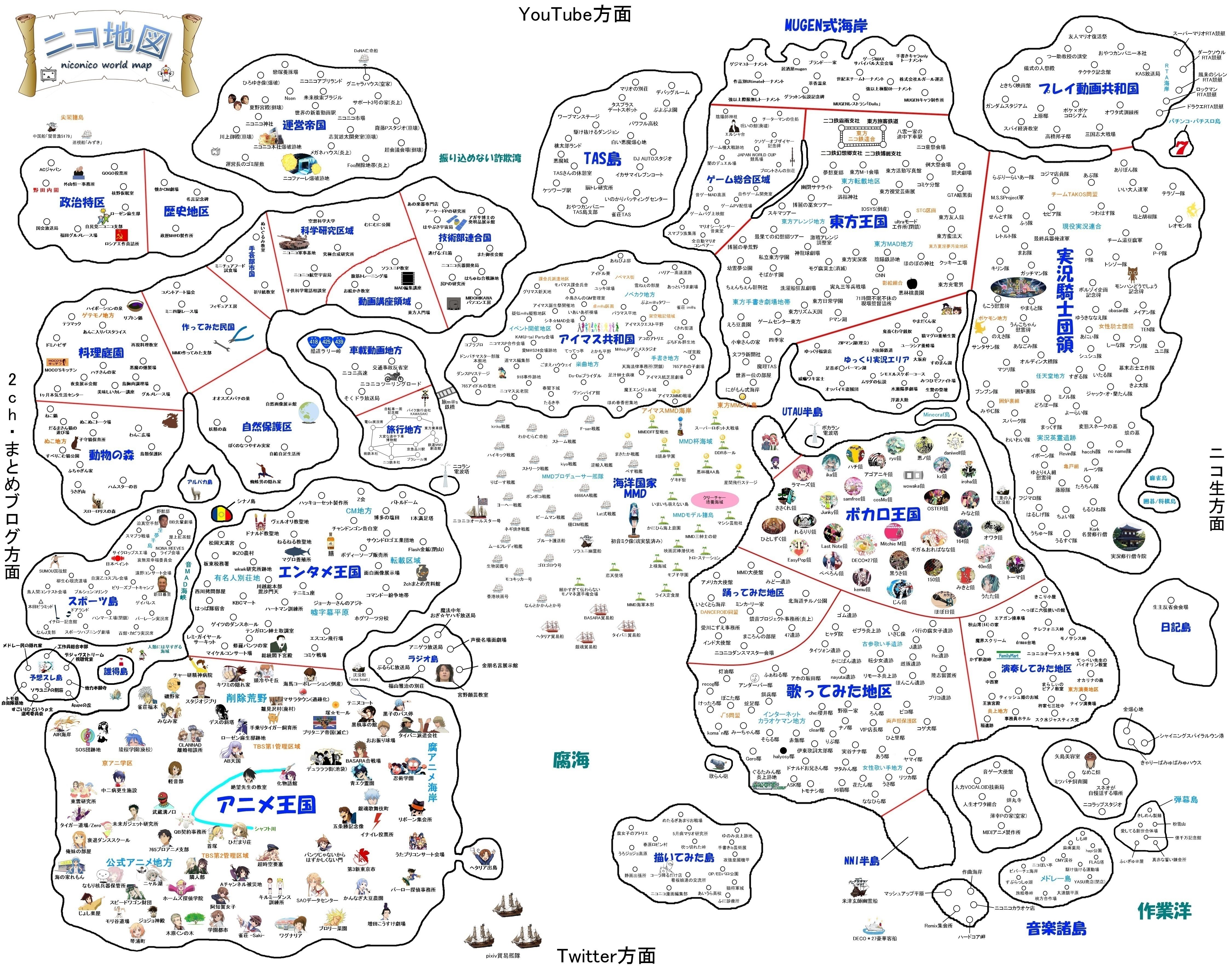 「ニコニコ動画内の各ジャンルやネタを地名や建物に見立てたファンタジーマップ(仮想地図)」のことです(ニコニコ大百科の記事)