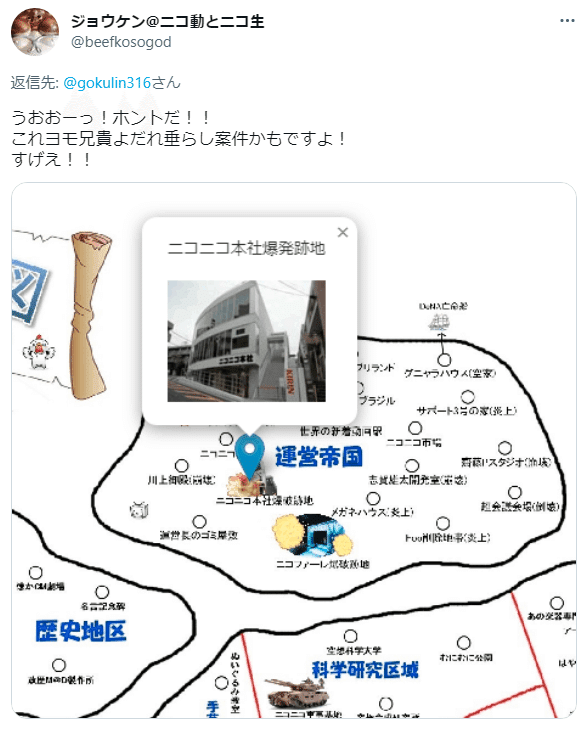 私のニコ地図告知ツイートに2023年2月4日、ごくりん兄貴からリプがつきました。
